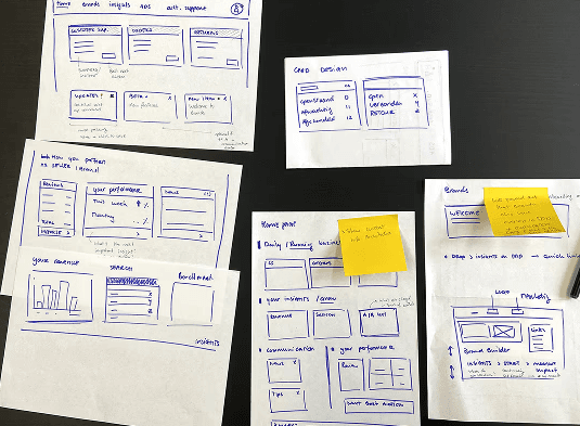• Low-fi concept testing with paper prototypes and co-creating in designs via PowerPoint.